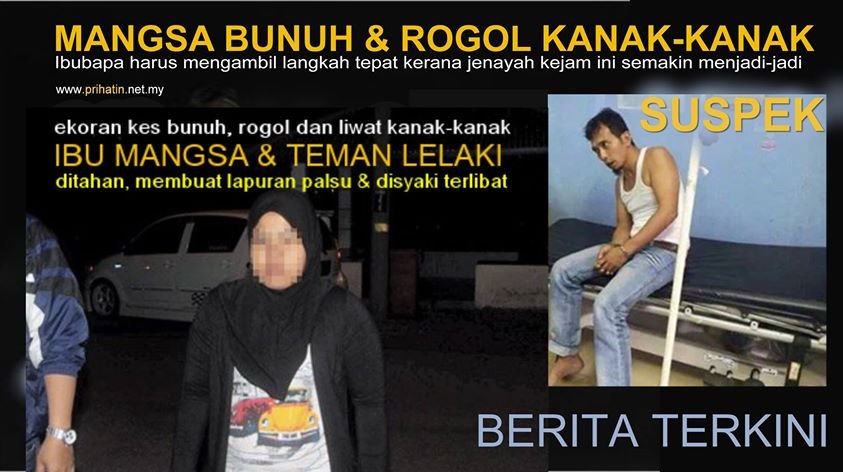 Kes liwat, rogol dan pembunuhan kejam ke atas anak kecil berusia 2 tahun semalam diberitakan juga turut melibatkan ibunya. Sebelum ini juga terlalu banyak berita yang sama, iaitu anak-anak dibunuh oleh teman lelaki ibunya. Sebahagiannya turut di liwat dan dirogol oleh teman lelaki ibunya, termasuk hasil kekejaman Awang Hitam yang dijadikan jantan sewaan pemuas nafsu ibunya.