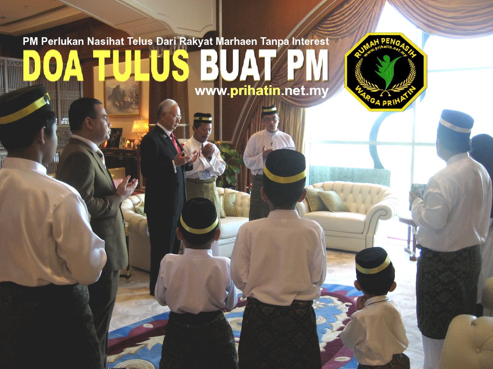 Kami bertemu Perdana Menteri kira-kira 2 bulan yang lalu di pejabat beliau secara khusus. Perbincangan secara khusus itu menampakkan beliau kelihatan PRIHATIN tentang masa hadapan Malaysia. Tatkala beliau membuat penyerahan wang sumbangan ke tangan anak kami Nik Muhammad Harraz Nik Mat, kami melihat airmuka beliau memerlukan satu suntikan semangat dan INPUT JUJUR tanpa prejudis, tanpa kepentingan projek atau pangkat, tanpa ada niat menjadi calon atau bukan untuk sesuatu di luar dan keluar dari kepentingan Uluhiah, agama Islam & kesejahteraan rakyat itu sendiri.