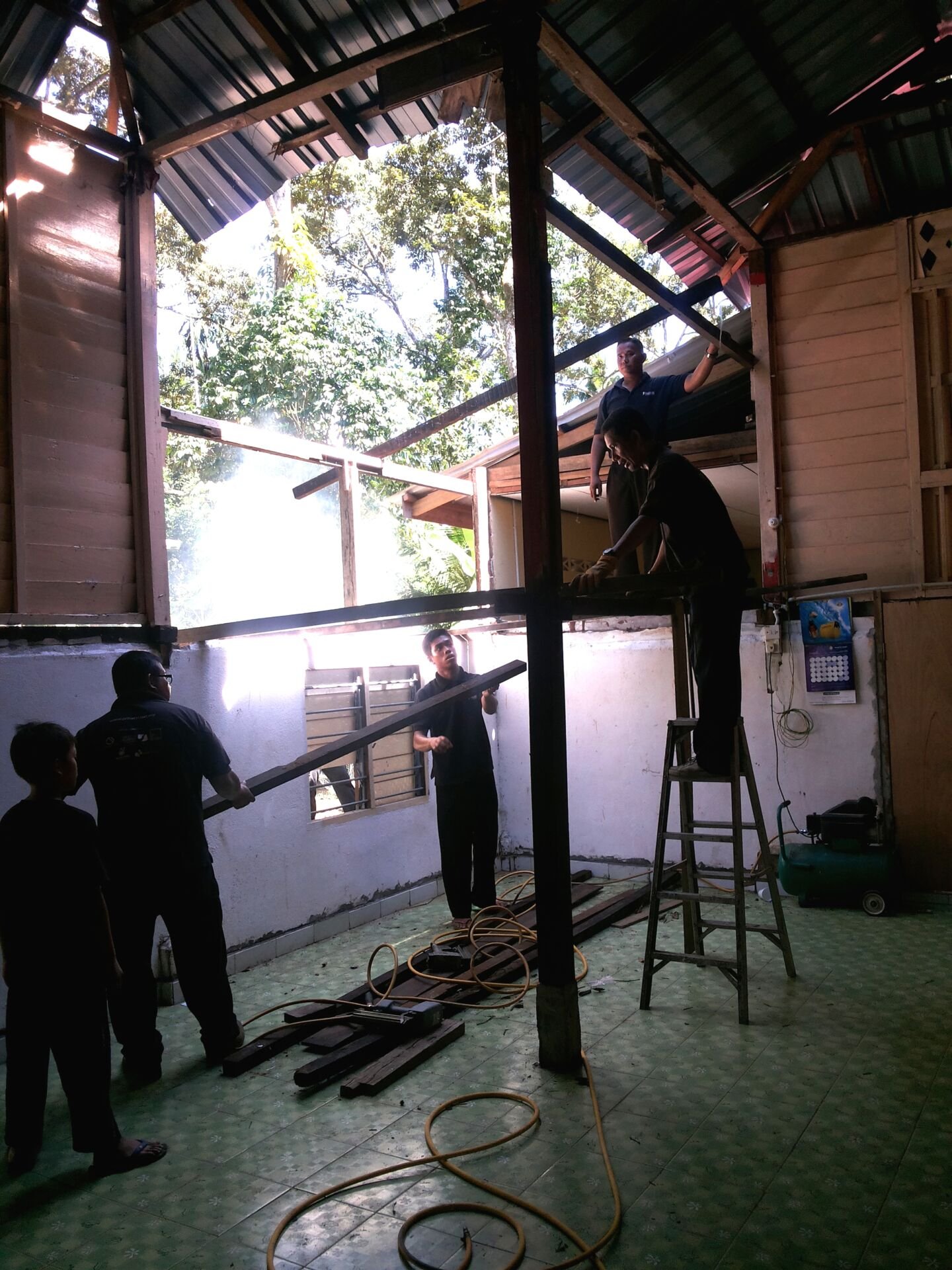 Dalam pada hati sebak, merintih memikirkan sikap manusia yang tak punya rasa. Manusia yang Nabi katakan tidak sempurna Islam dan imannya membiarkan yang daif tidak terbela. Tiba tiba tersentak dengan suara orang desa yang berkata “ Amboi cepatnya YB hantar orang baiki rumah… sempat siap dalam 1 hari..!’. pada masa yang sama seorang lagi terpinga-pinga bertanya “kamu semua ini datang dari mana?”.. Allah saja yang tahu perasaan di hati.